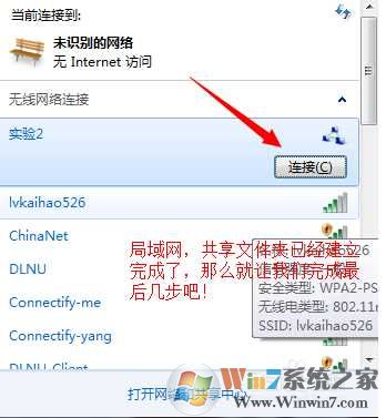这样就完成了win7 建立无线局域网了。