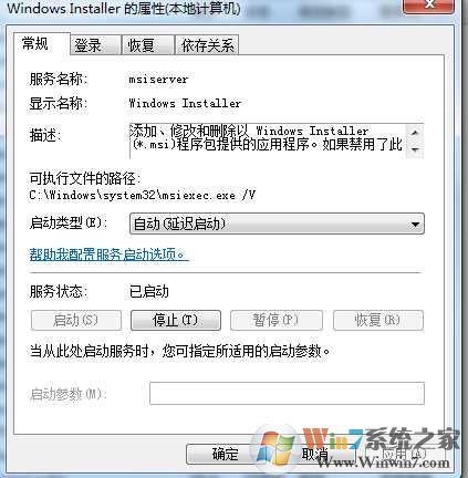 解决方法一:启动Windows installer服务