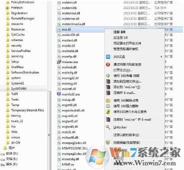 1、首先打开C:\Windows\SysWOW64文件夹,找到msi.dll www.winwin7.com Win7系统之家