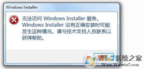在Win7系统中安装软件的时候,出现无法访问Windows installer服务,windows installer没有正确安装软件安装不上,遇到这样的错误要如何解决呢?故障图示如下: