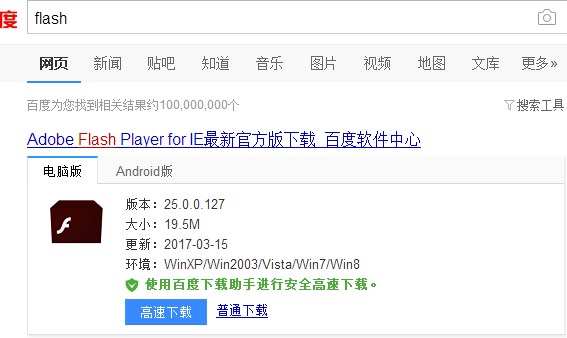 3、下载最新版本的Adobe Flash Player 插件进行安装,安装后关闭所有网页再重新打开。最新版本大家可以去百度一下就可以了,通过这个方法不管你有没有安装还是版本过低都可以解决视频不能播放的问题。