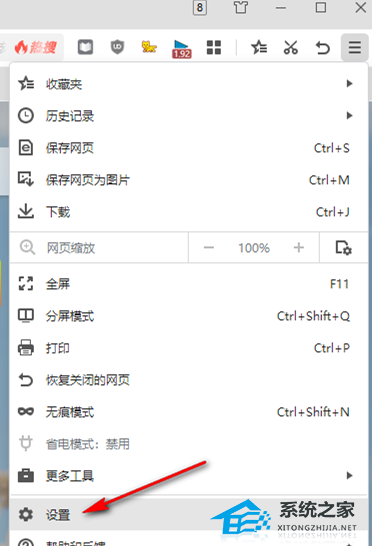 2. 打开“三”图标之后,我们在下拉列表中找到“设置”选项,点击打开该选项。