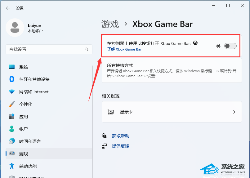 3. 右侧选择到【Xbox Game Bar】,将在控制器上使用此按钮打开 Xbox Game Bar【关闭】。