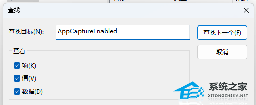 4. 查找【AppCaptureEnabled】,然后将AppCaptureEnabled选项的值由原来的【1】改为【0】。