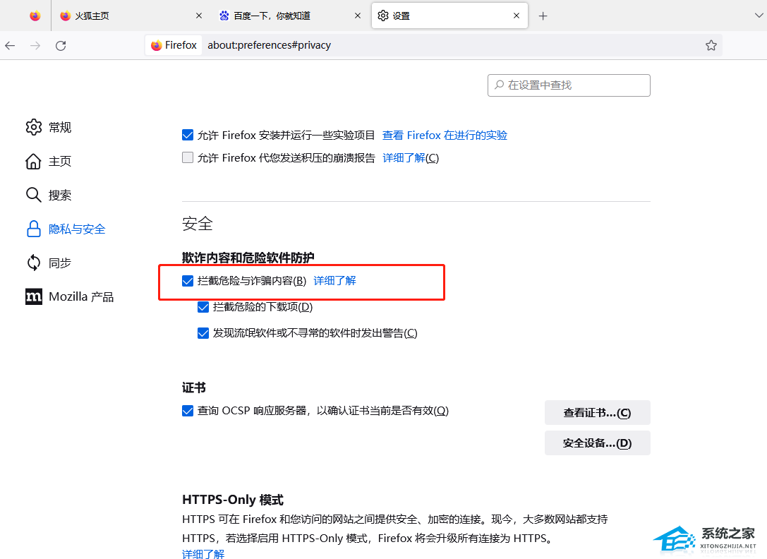 火狐浏览器存在违法信息的网站提示怎么关闭?