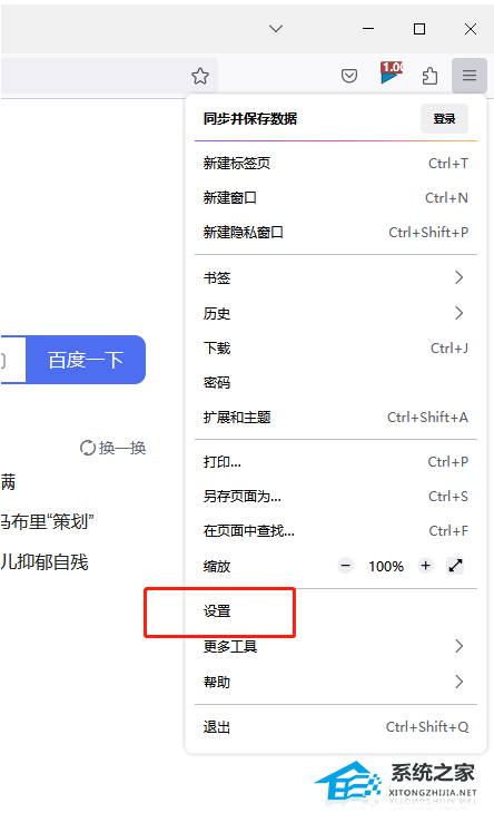 2、这时可以看到拓展出来的下拉菜单,用户可以看到有新建隐私窗口、扩展和主题、更多工具等选项,点击其中的设置选项。