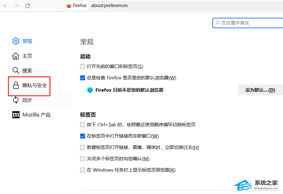 3、在打开的设置页面中,用户将左侧的选项卡切换到隐私与安全选项卡上。