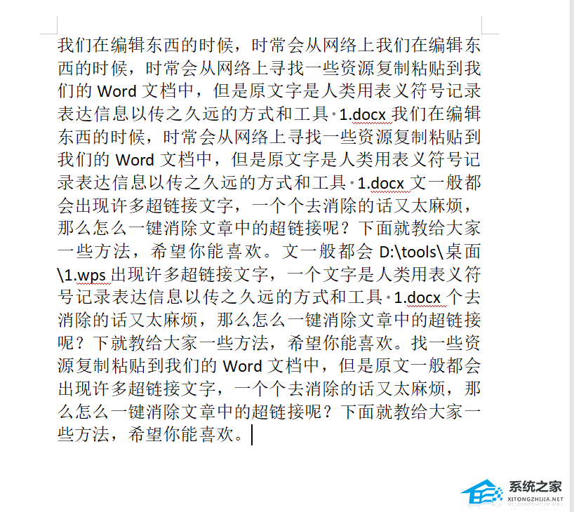 5、随后用户会发现文档中的超链接已被成功取消,变成了正常的文字,如图所示。