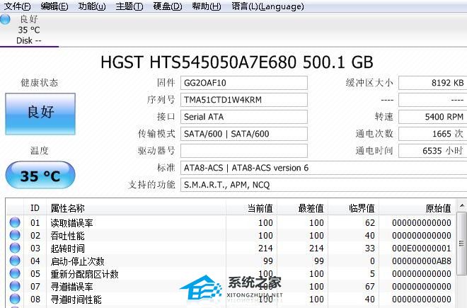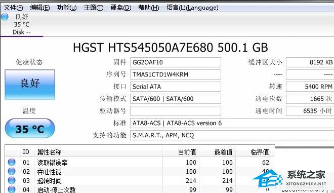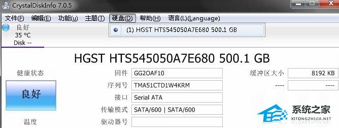1、进入“CrystalDiskInfo”主界面,可以看到基本信息。