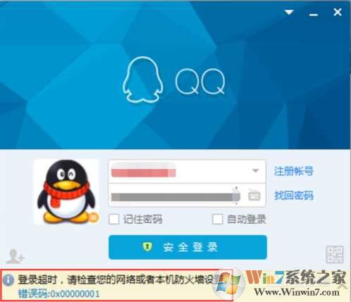 在Win7系统下登录QQ时出现错误代码0x00000001 登录超时的问题,可能很多朋友都会遇到,那么这时我们要如何解决呢?如果你也出现这样的问题可以根据在下介绍的方法进行排查并解决QQ登录问题。