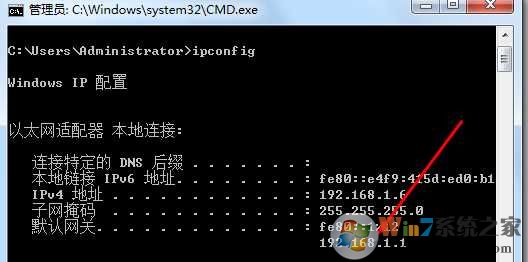 在命令提示符下输入ipconfig 回车 看到的网关就是路由器IP地址了。