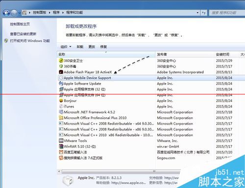 3、随后在应用程序列表中,找到 Apple Mobile Device 一栏,双击即可启动卸载程序。