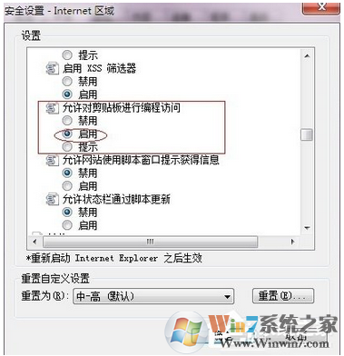 3、然后在弹出的窗口里下拉找到"允许对剪切板进行编程访问"。并选择"启用"然后"确认"即可。