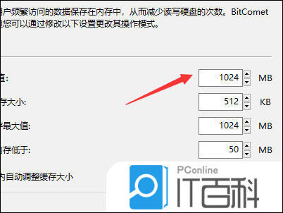 7、最后点击磁盘缓存,根据电脑性能设置,一般设为1024MB,就设置完成了,下载试试速度提高了。