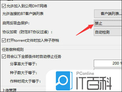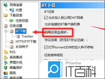 6、禁用【反吸血保护】设置。如果开启反吸血,也无法去吸血,所以下载速度慢。