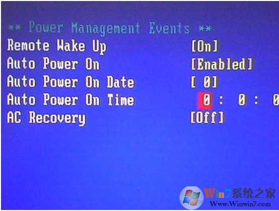 3. 在上图中的"Auto Power On Date"选项中,其键值设为0,为每天定时开机。而"Auto Power On Time"选项则是表示开机时间,自己选择,上图的自动开机时间为每天的凌晨"00:00:00"。全部设置好后,按F10,保存并重新启动即可。