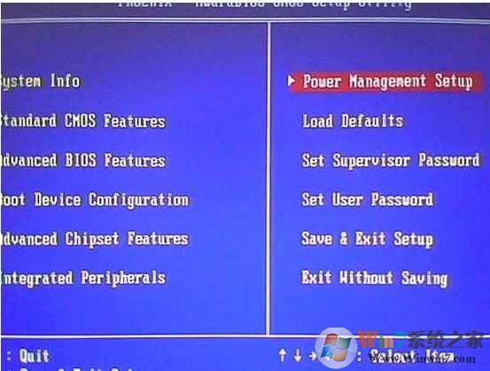 1. 启动系统按DEL,进入BIOS,然后选中 "Power Management Setup" (电源管理设置),如下图:
