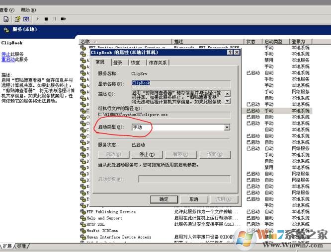 2、找到ClipBook服务,双击打开,启动即可