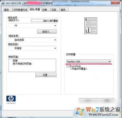 2、进入"纸张/质量"的选项卡,尝试修改右方的"打印质量",还可以选择不同的打印质量试试是否可以打印