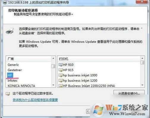 在这里选择HP,然后在右侧找到你要安装的型号;