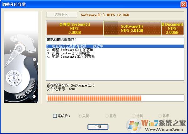 3、 无损分区调整过程中,请不要使用其他软件对磁盘进行读写操作。事实上,DiskGenius在进行无损分区调整过程中,会自动锁住当前正在调整大小的分区。