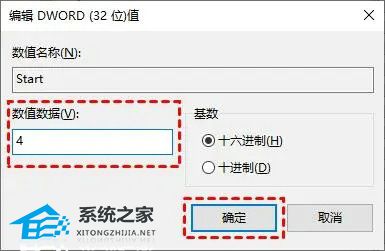 3. 在弹出的窗口中,将“数值数据”修改为“4”,随后点击“确定”。