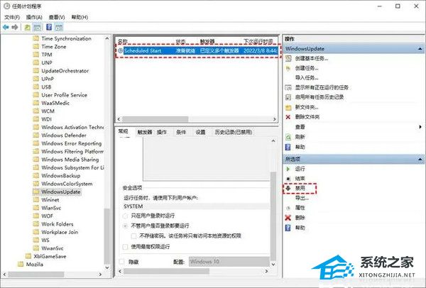 3. 接着,定位到“ScheduleStart”,在右侧的“操作”中点击“禁用”即可。