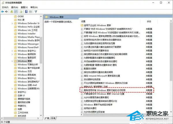 4. 之后在“Windows更新”页面中找到“删除使用所有Windows更新功能的访问权限”并双击打开。