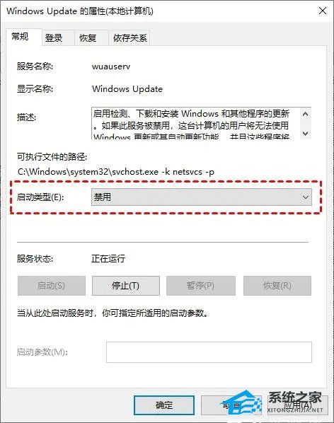 3. 在新打开的“WindowsUpdate”对话框里,将“启动类型”设置为“禁用”。