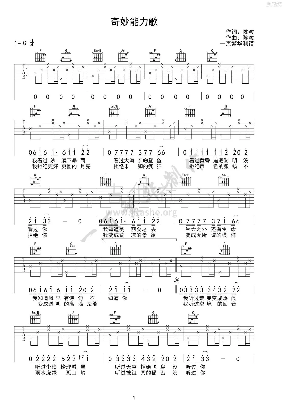 陈粒老师的经典作品之一,和弦简单,织体简单,对位也简单,易上手,超适合小白。