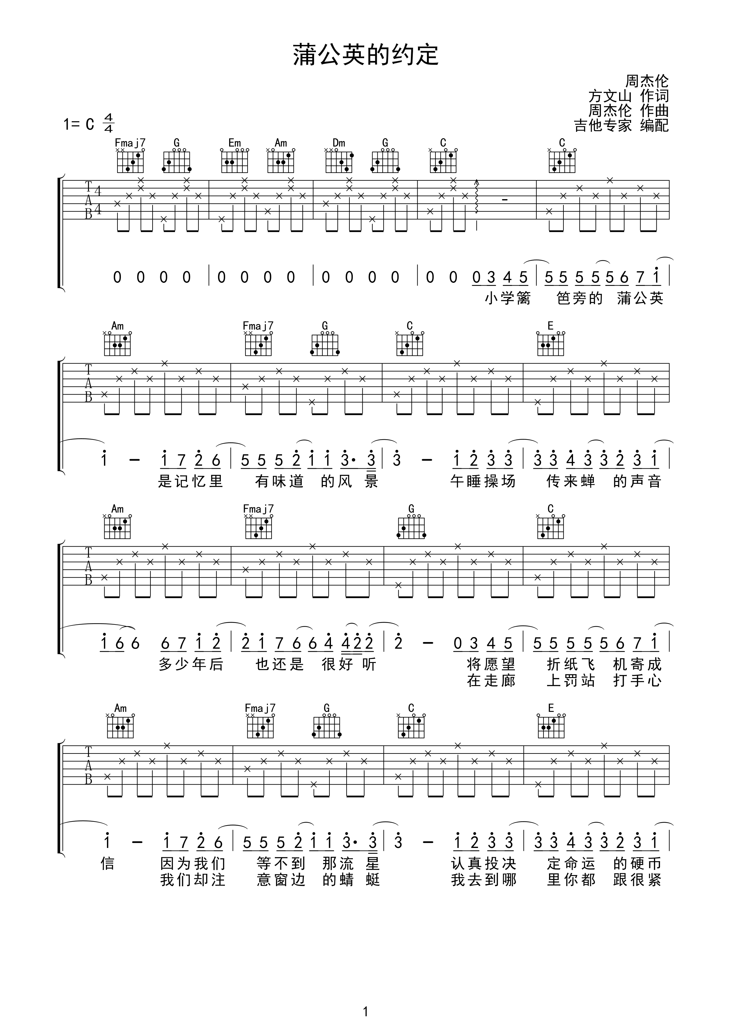 清清凉凉的小甜歌,qiao适合夏天哦。唯一的难点就是在节奏上,有切分音,连线,所以大家在弹唱的时候一定要注意的对位。