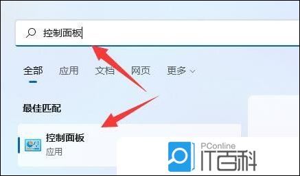 2、接着,在顶部栏,搜索并点击打开系统给出的最佳匹配控制面板应用;