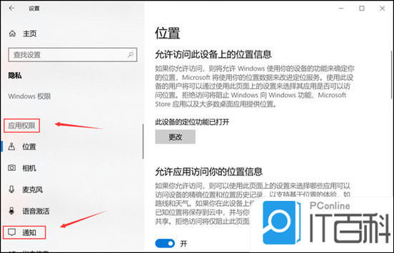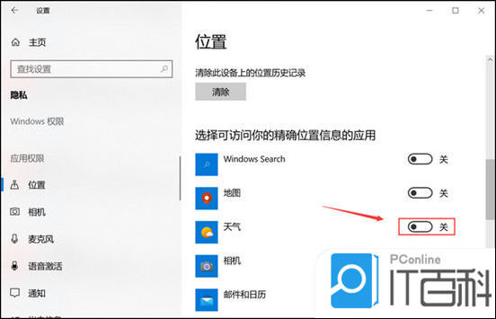 3. 进入隐私设置,左侧找到Windows权限,然后在应用权限管理中,点击相对应权限,比如位置权限;