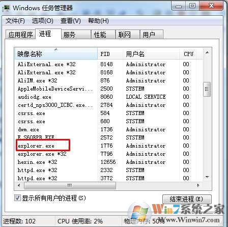2、在进程中找到Explorer.exe 点击结束;www.winwin7.com win7系统之家