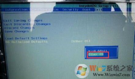 1、按开机键,等待开机画面出现时按f2进入bios,点击Exit,把OS optimized Defaults里默认Win8 64bit(或Win10 64bit)改成Other OS。