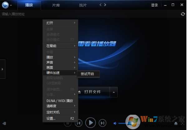 (1)在迅雷看看主界面点击鼠标右键,然后找到"硬件加速"点击"尝试开启"即可;