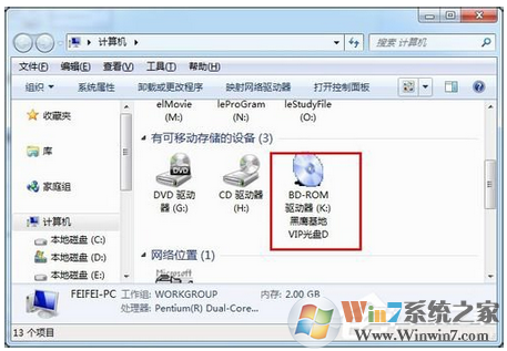 7.此时查看"我的电脑",就会发现已经成功虚拟出一个新的光驱盘符。然后就可以像物理光驱一样使用虚拟光驱了。