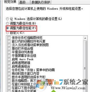 优化视觉效果,首先右击计算机图标选择属性, 然后在弹出来的界面中点击左侧的"高级系统"设置,然后在弹出窗口中切换到"高级"选项卡,点击性能栏目下的"设置"按钮,然后将时间效果选择"调整为最佳性能"或只保留一些必要的项目即可。
