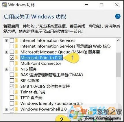 2、找到并重新勾选 Microsoft Print to PDF — 再点击确定重新安装即可