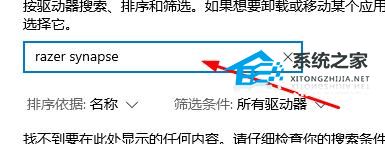 3、然后在这里我们输入雷蛇驱动的名字进行查找。