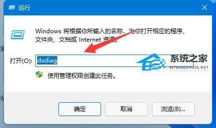 2. 打开后,输入“dxdiag”,回车进入dx诊断工具。
