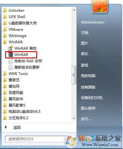 1、从开始—所有程序中找到Winrar,也可以搜索;