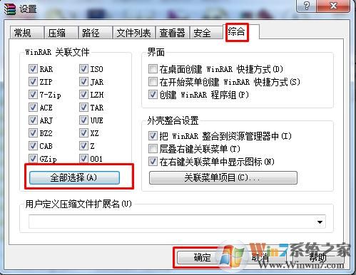 3、在综合下,点击全部选择,然后点击确定就可以了~(PS:不想关联的不要勾选)
