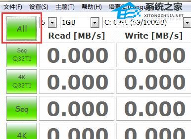 2、点击图中“All”按钮,检测全部的硬盘速度。
