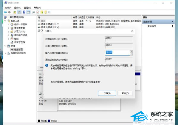 3. 选择要分区的C磁盘,打开“压缩卷”。