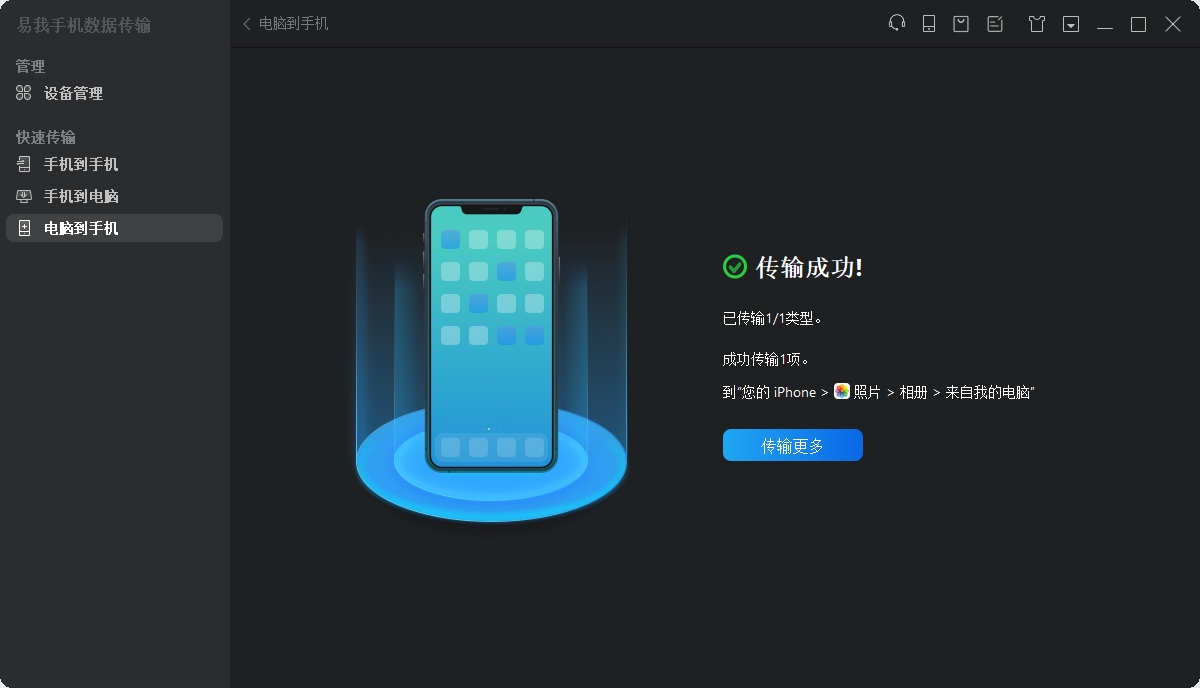 除了苹果官方提供的传输方式,适用于iOS的【易我手机数据传输】也是一种在iPhone和PC之间传输文件的有效方法。无论是在iPhone、iPad、iPod Touch之间传输文件,还是在PC与iOS设备之间互传文件,它都可以轻松办到。该程序支持大部分文件类型,例如音频、视频、文档、图片等。