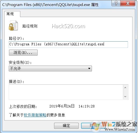 3、那就是设置组策略。开始,运行,secpol.msc,依次点击展开软件限制策略-其他规则,右侧点击新建路径规则,弹出对话框输入该程序路径,安全级别为"不允许",点击确定即可。本来每天都会弹出,今天终于没有了,又起到了禁止它运行的目的。