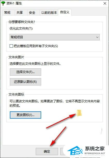 5. 点击还原默认值选项之后,在文件夹图标处就能看到图标变回原本的样式了,确定保存即可。