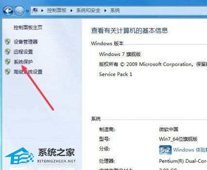 3. 在Control Panel Home(控制面板主页)菜单中,轻触或单击System protection(系统保护)。