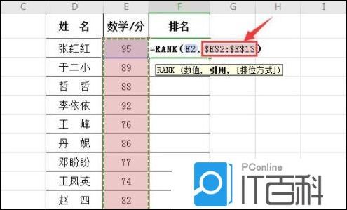 4、然后按下F4,即可对rank函数的第二个参数做绝对引用。